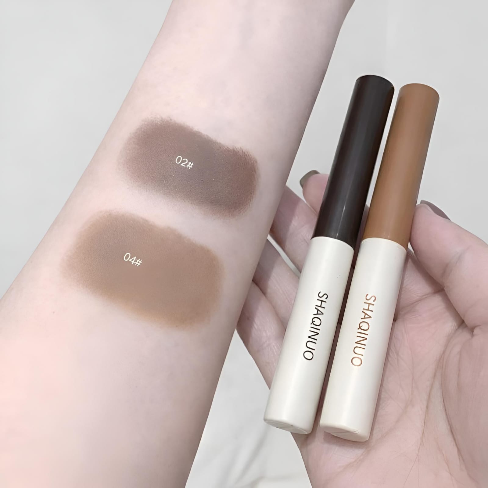 Usa 02 Ash Cocoa para profundidad en la cola y 04 Warm Latte para suavizar el inicio de la ceja.